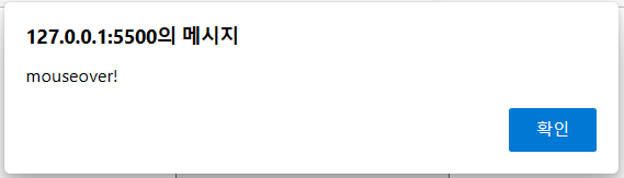 ✓ 마우스 포인터를 움직이면 mouseover이벤트가 활성화되면서 alert()함수가 실행됩니다.