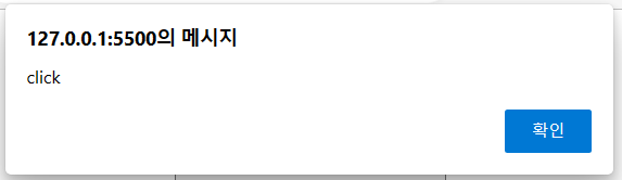 ✓ click버튼을 클릭하면 onclick이벤트가 활성화 되면서 alert() 함수가 실행됩니다.