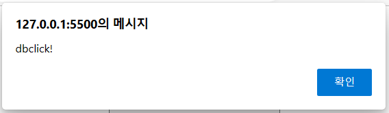 ✓ double click 버튼을 더블클릭하면 마찬가지로 dblclick이벤트가 활성화 되면서 alert()함수가 실행되게 됩니다!